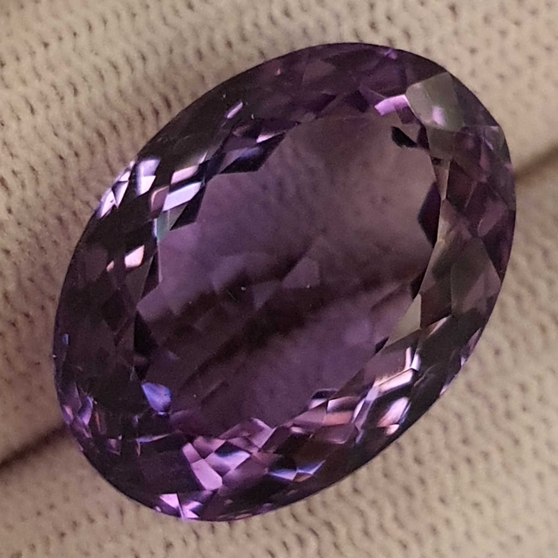 greutate: 21.61 caratefatetare: ovaldimensiuni mari: 20 x 14,5 x 11,2 mmclaritate: foarte bunaculoare: violet mediu intens