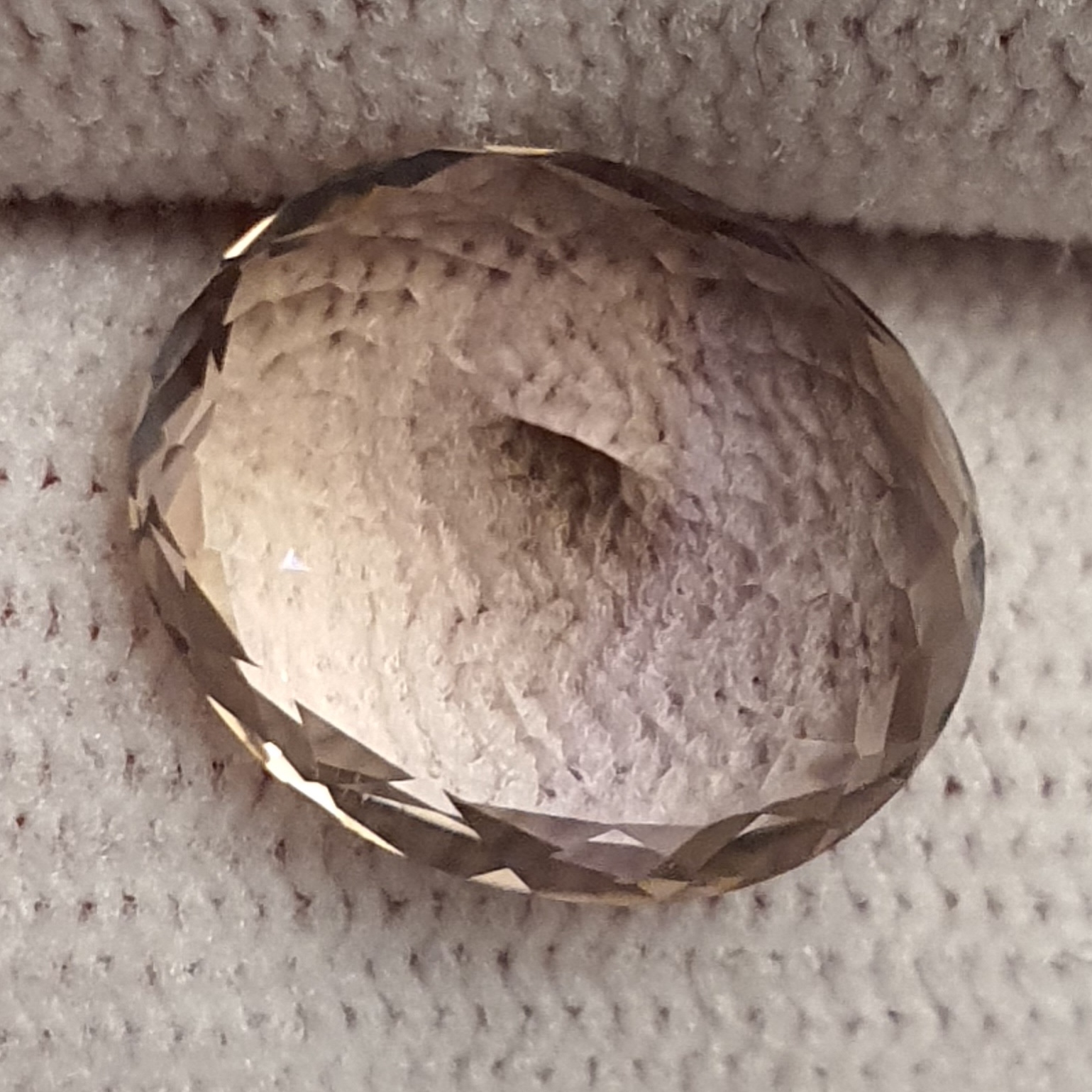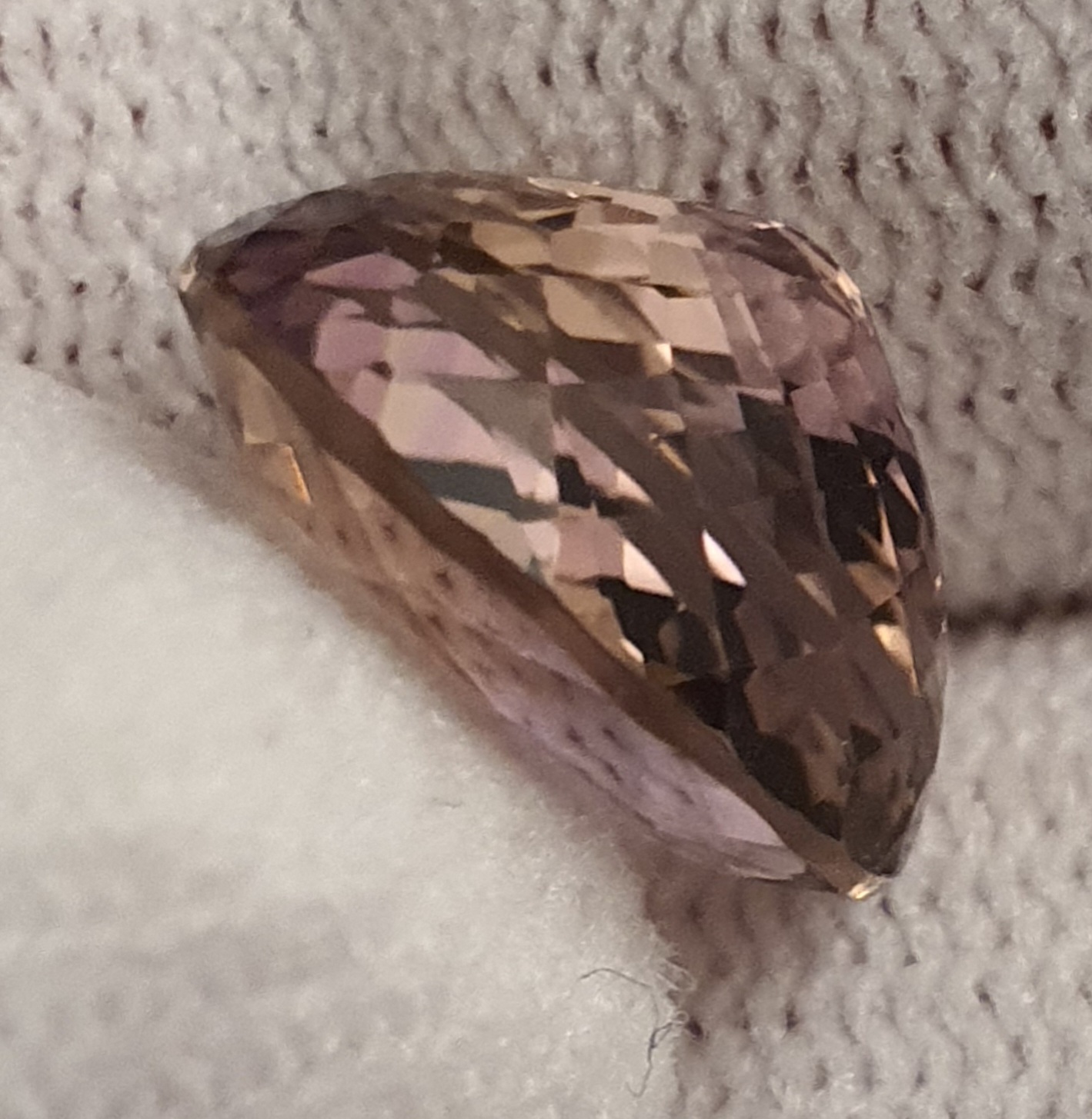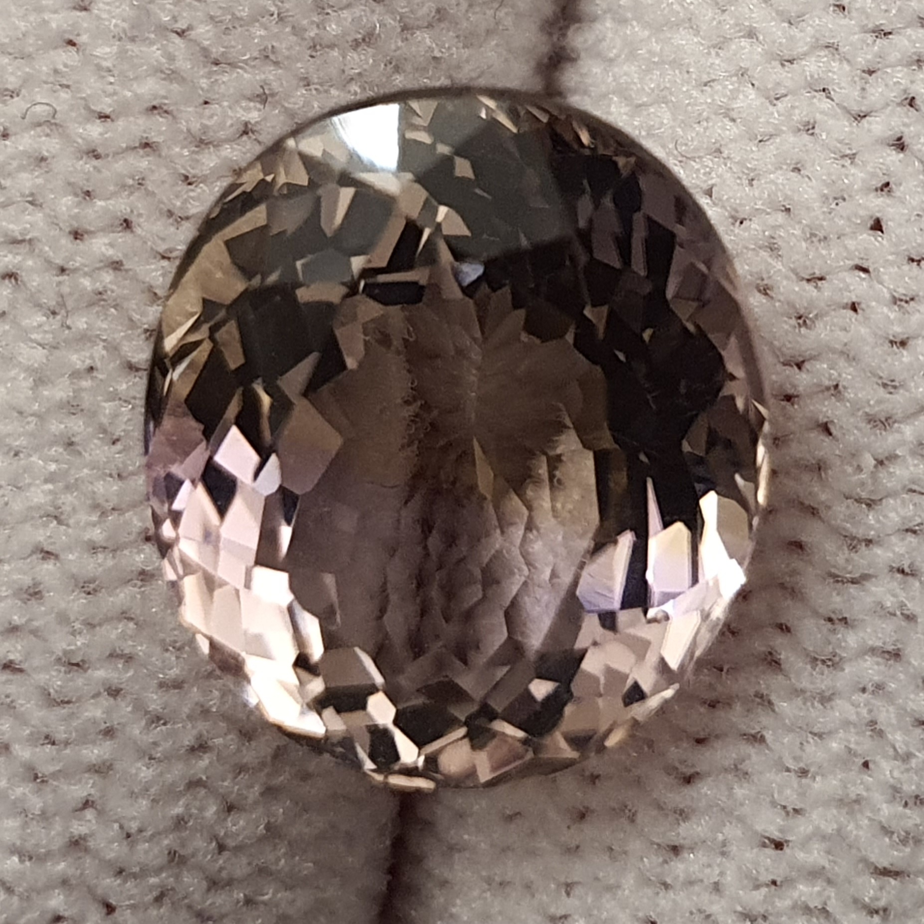 ametrin natural fatetat oval, clar si curat, violet-auriu deschis, culoare eleganta, in greutate de 5.54ct si cu dimensiunile: 12.3 x 10.5 x 7.1mm