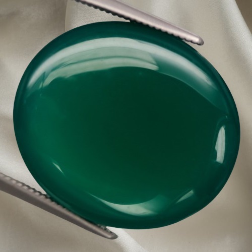 calcedonie naturala transparenta, verde-rolex, caboson oval de 24.59 carate si 21.4 x 19.7 x 8.6mm