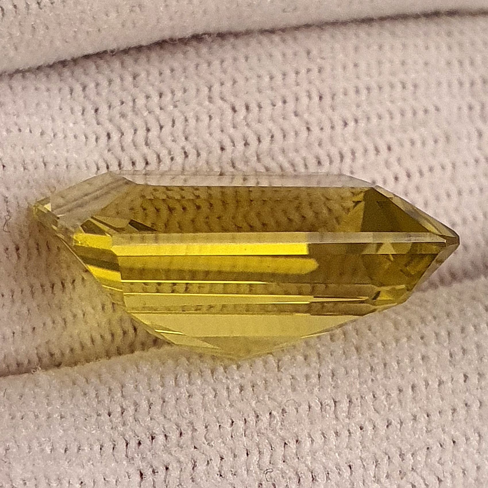 piatra solara, frumoasa si eleganta, perfecta intr-o bijuterie de vara, cuart natural galben-verzui de 16.87ct, clar si curat, octogon cu dimensiunile: 19.1 x 14.1 x 9.14mm