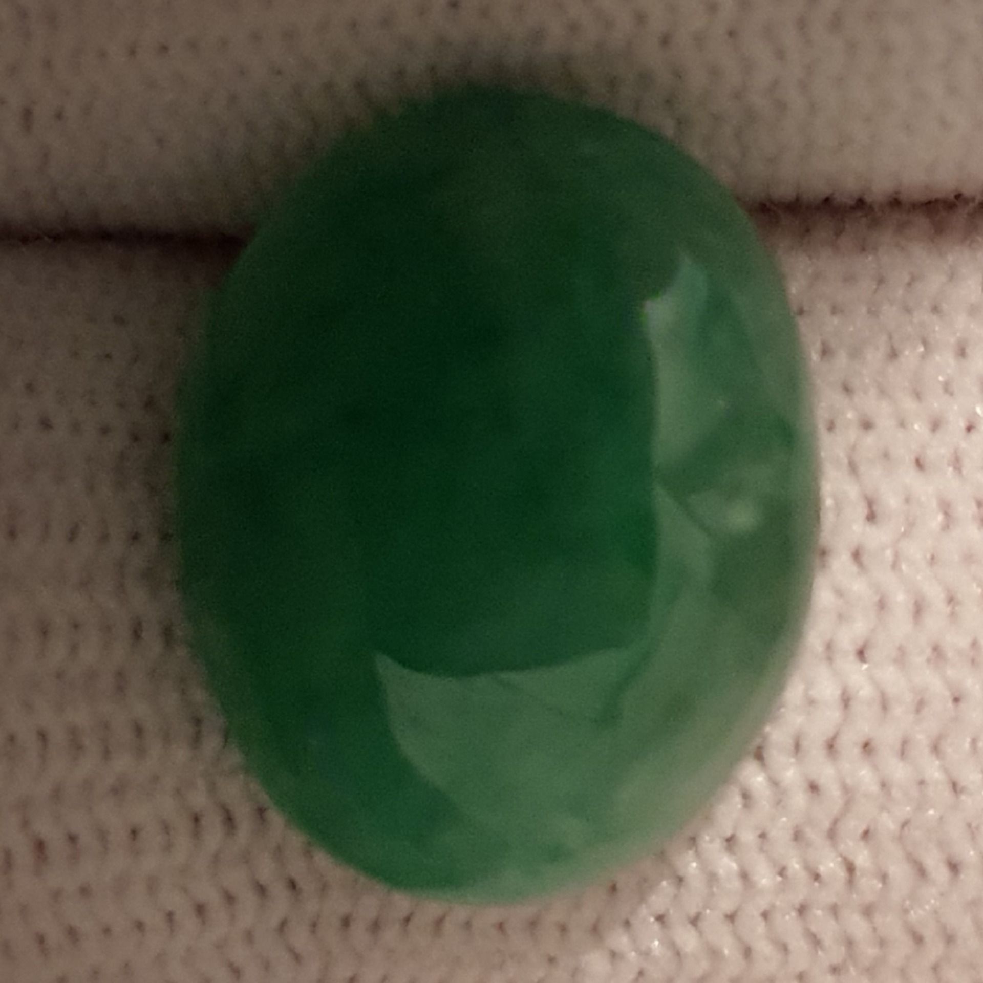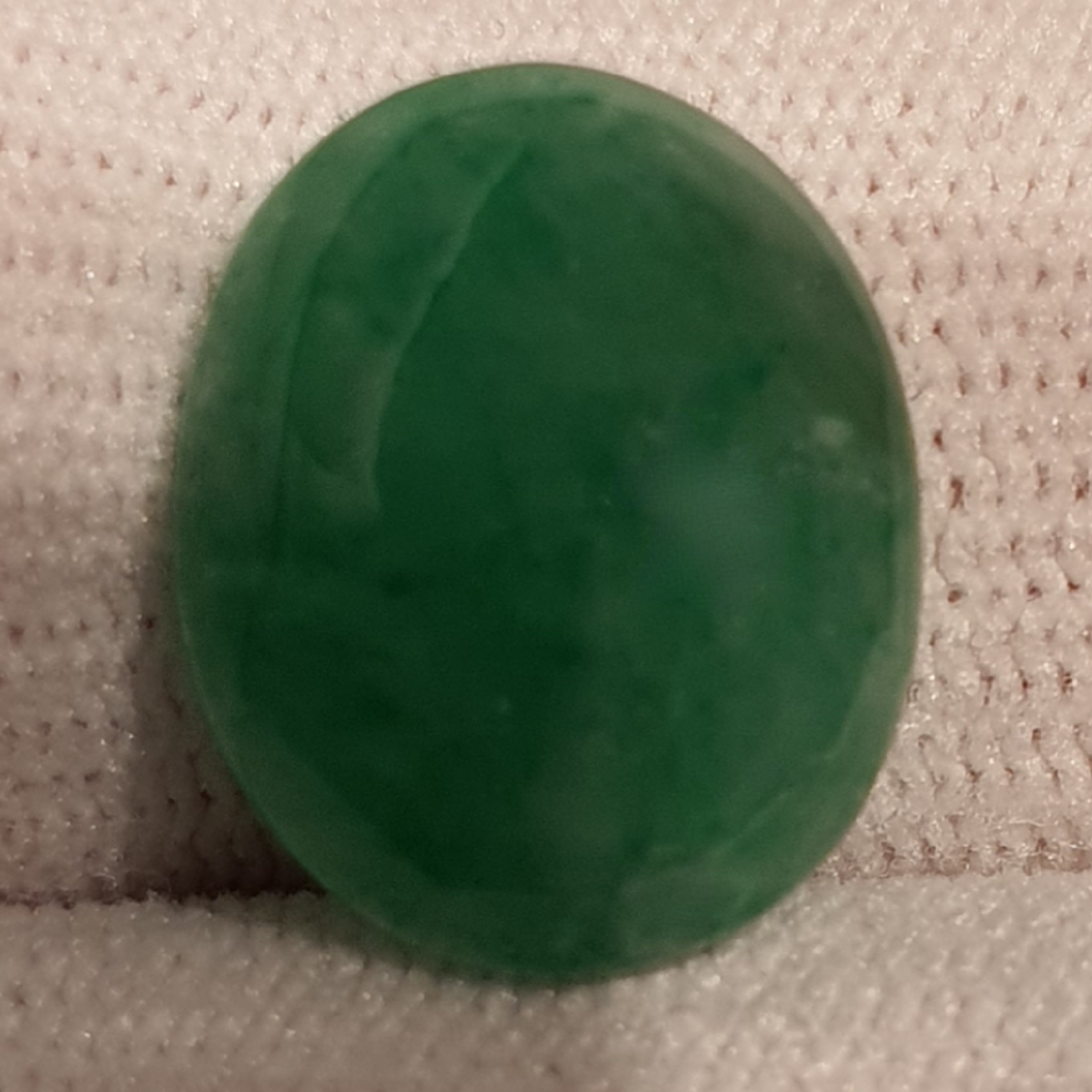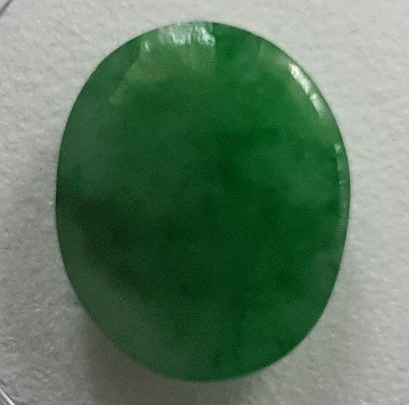 piatra naturala: jadcarataj: 9.71 carateclaritate: translucid; forma: oval, slefuit cabosondimensiuni mari: 16,12 x 13,16 x 5,02mmculoare: verde mediu viu, foarte frumostratament: standard pentru culoare