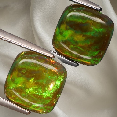 superb opal natural ciocolata, cu irizatii mari in culori electrice (vernil, turcoaz, galbene, oranj-roscate), in greutate de 1.88ct, pernita slefuita excelent pe toate partile, cu dimensiunile 10 x 10 x 3,3mm