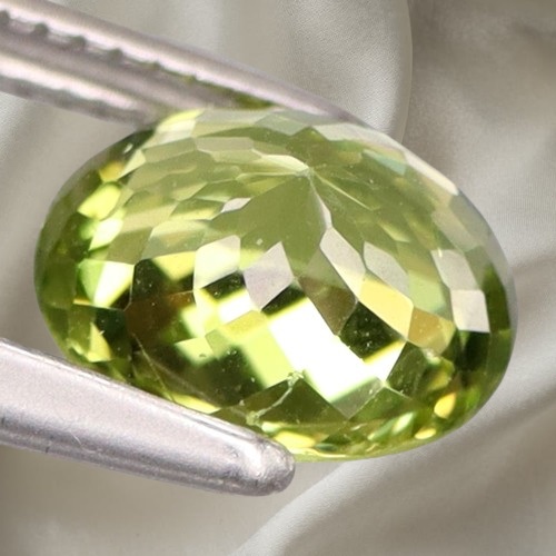 peridot natural claritate VS curat, in greutate de 1.37ct, fatetat oval, cu dimensiunile: 7.4 x 5.9 x 4.3mm