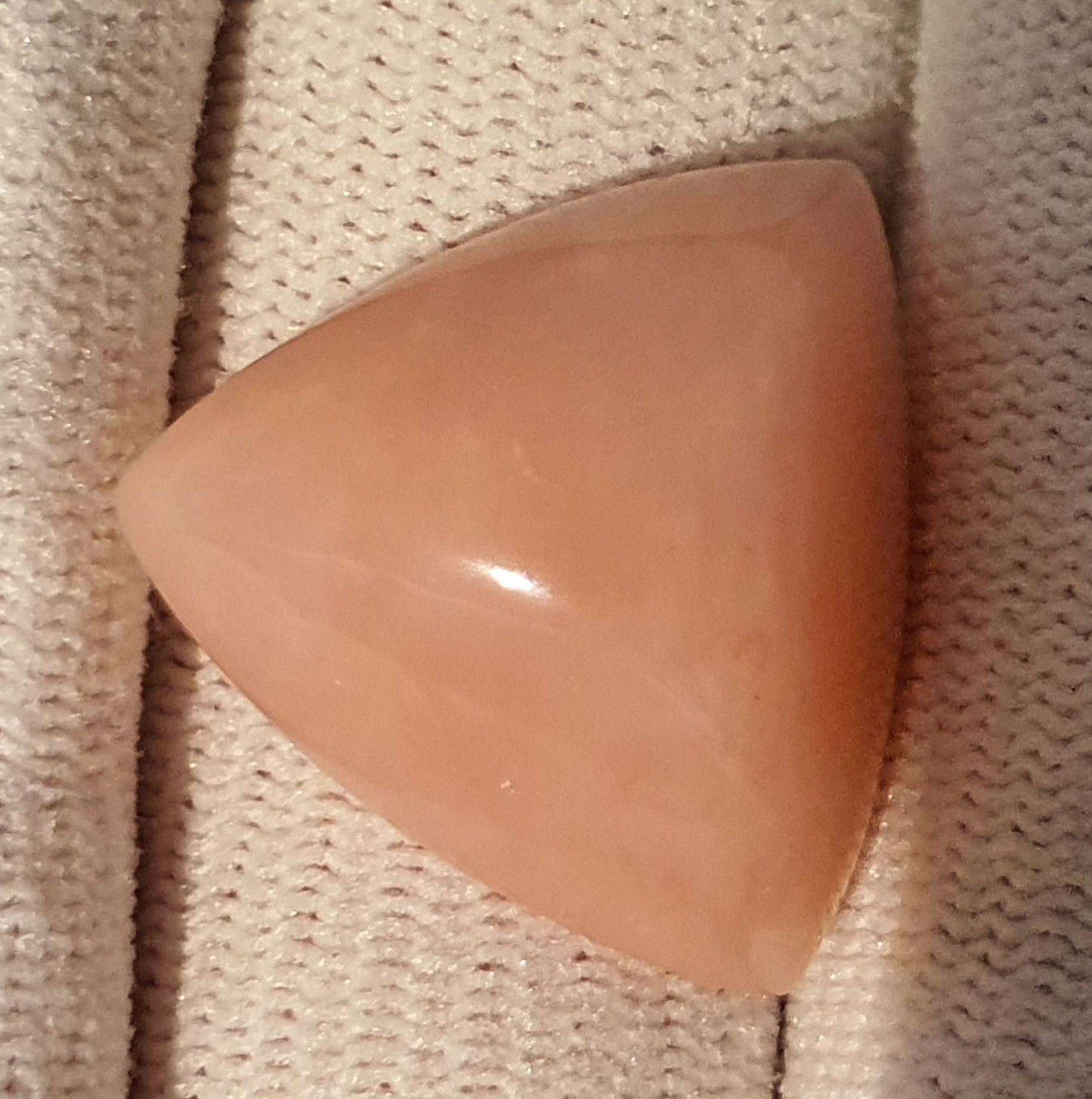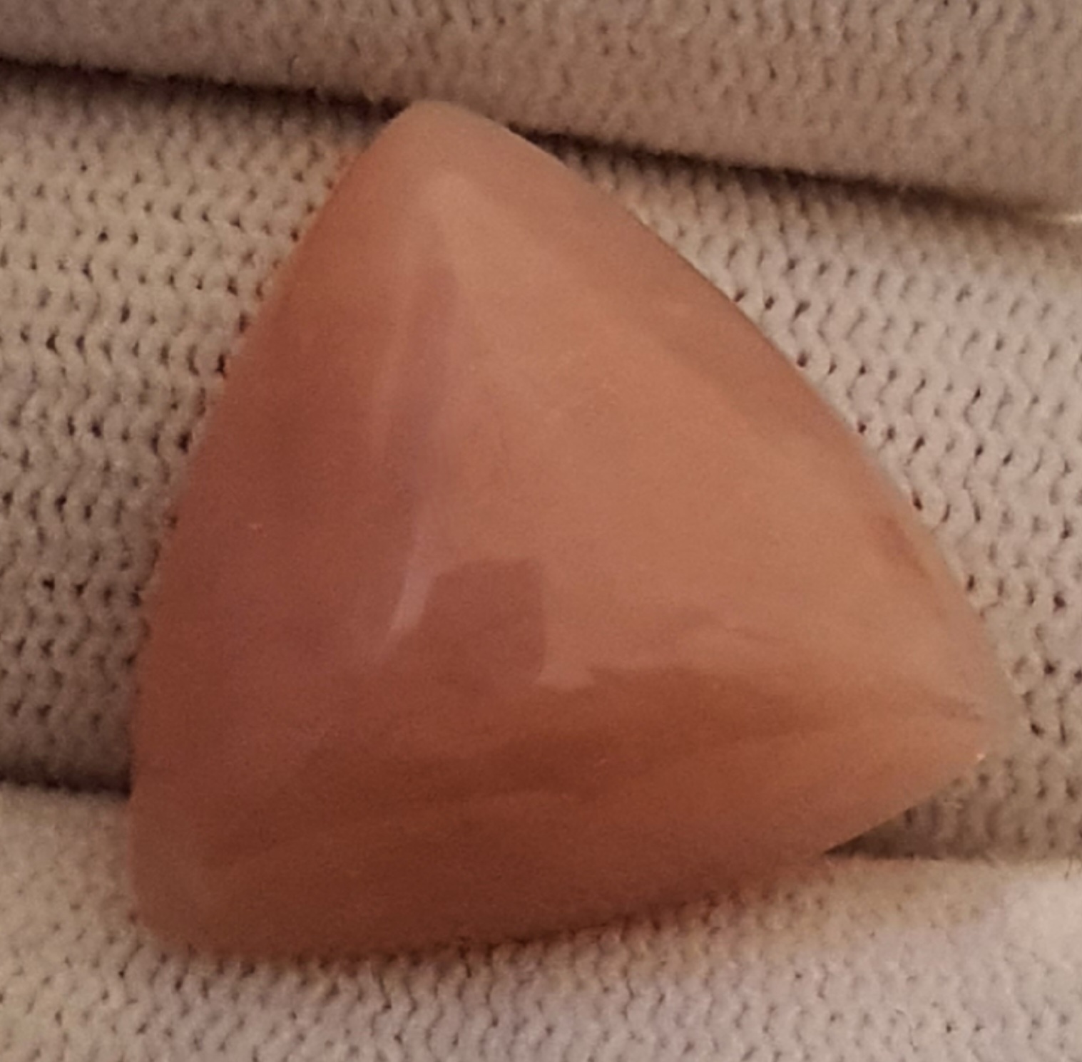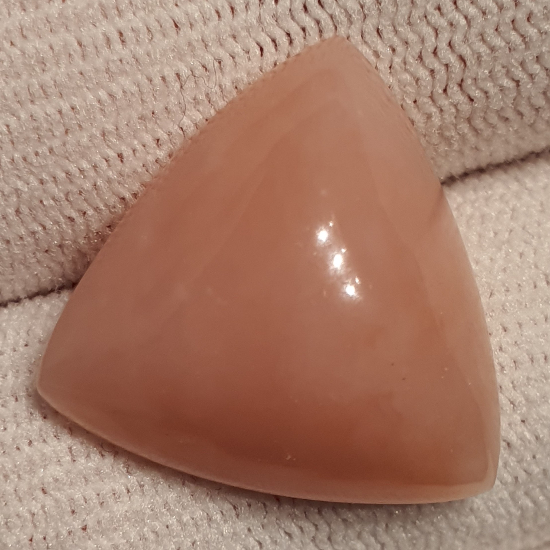 frumos si remarcabil opal natural mexican, roz, opaco-translucid spre margini, caboson triunghiular de 17.14 carate, cu dimensiunile: 20,2 x 20,2 x 9,5mm