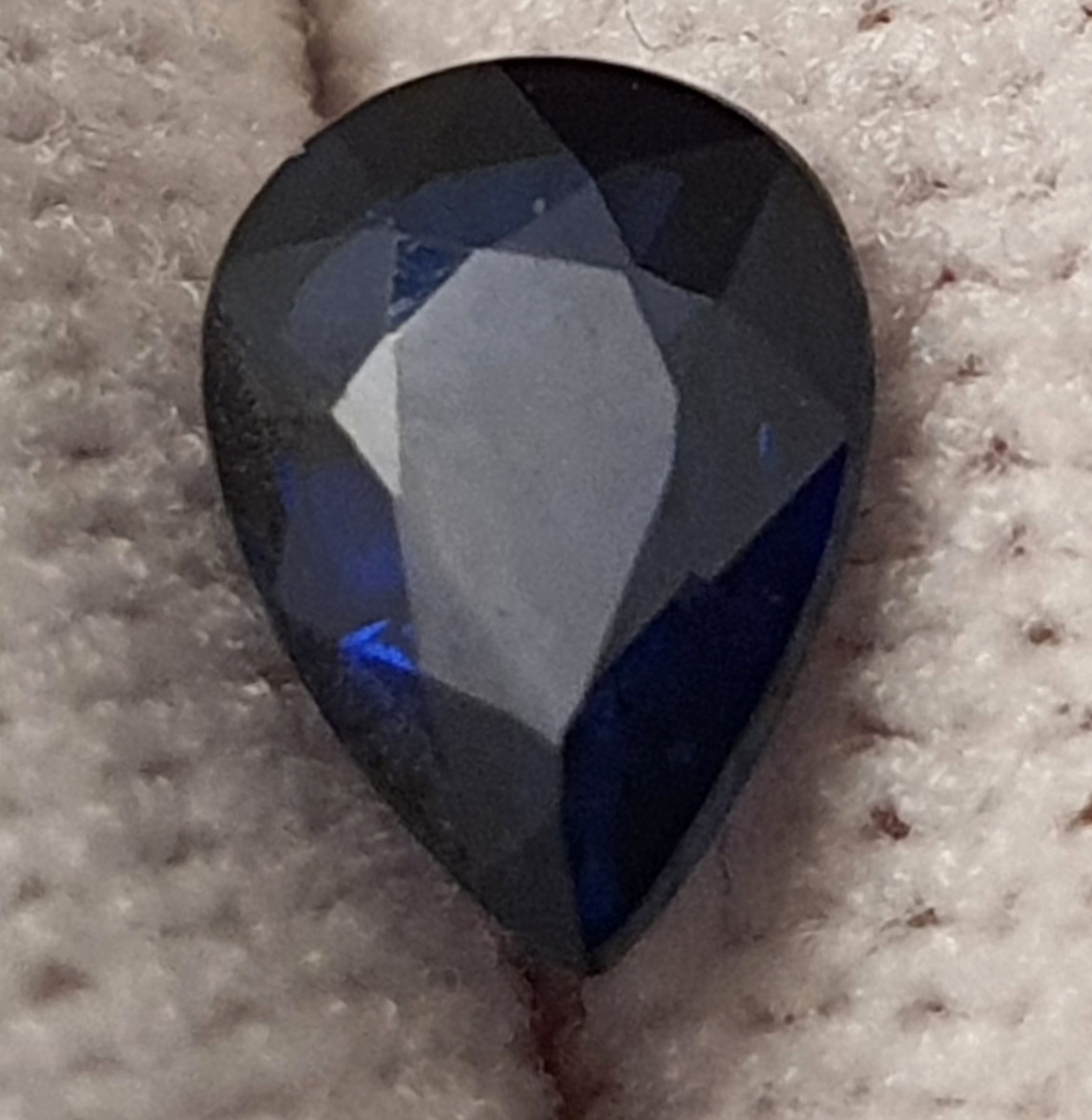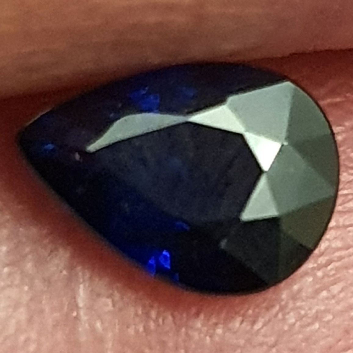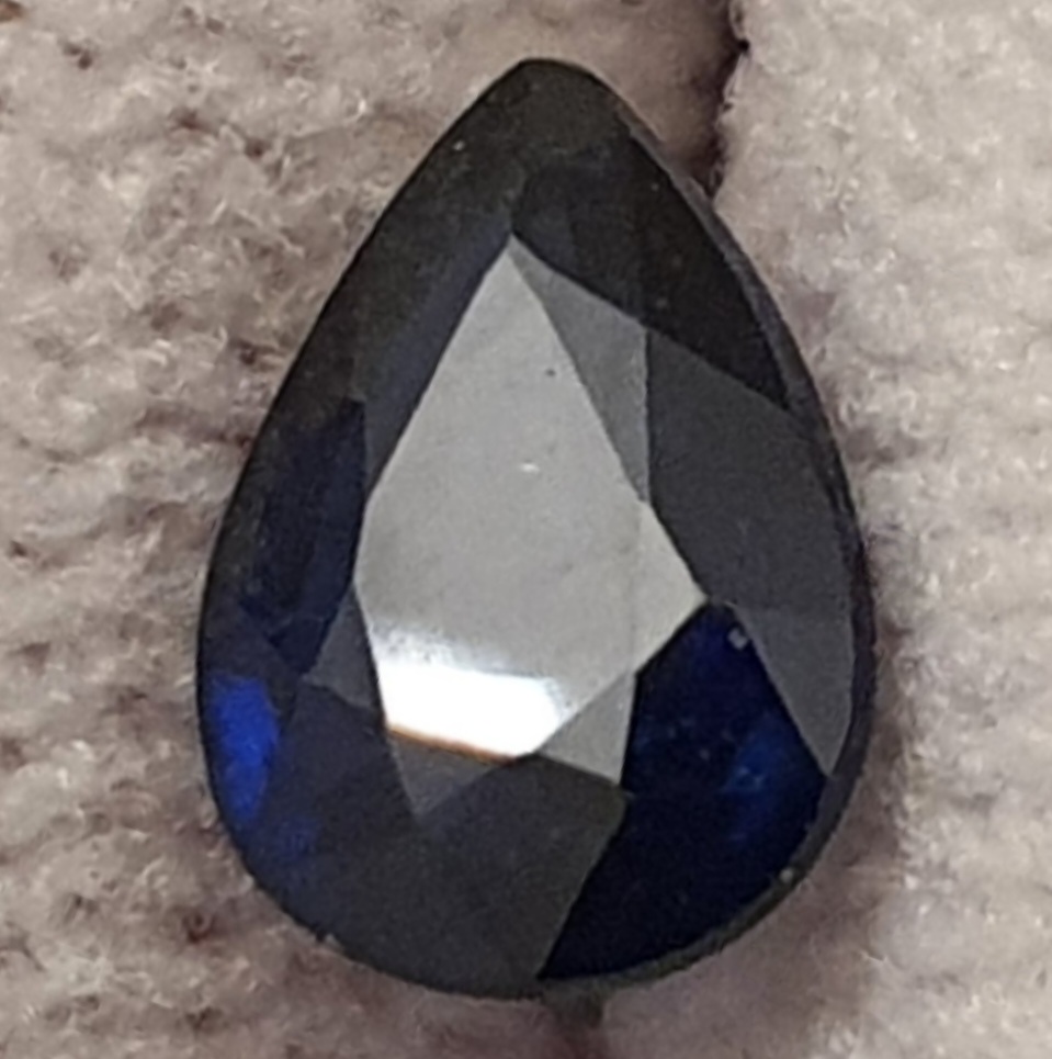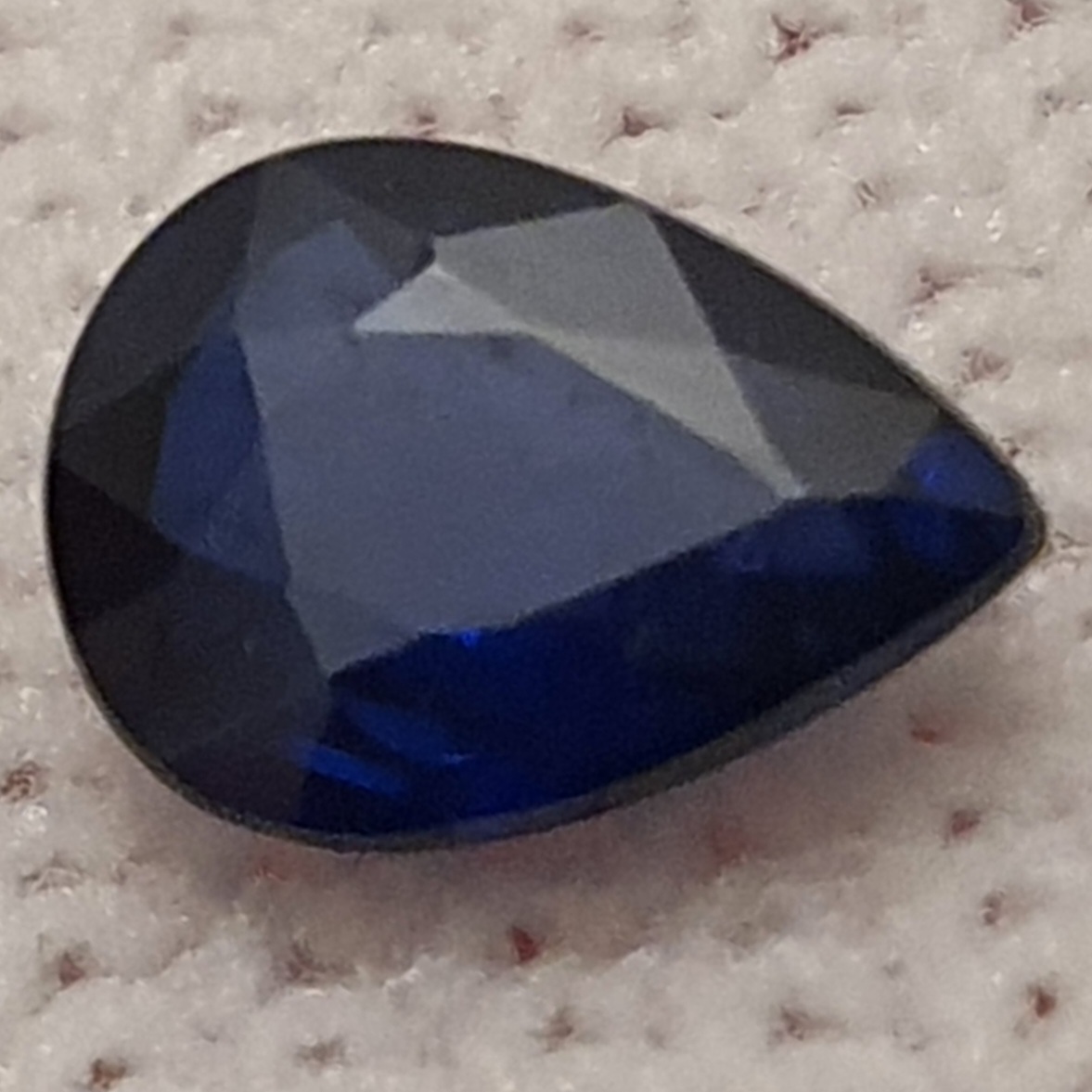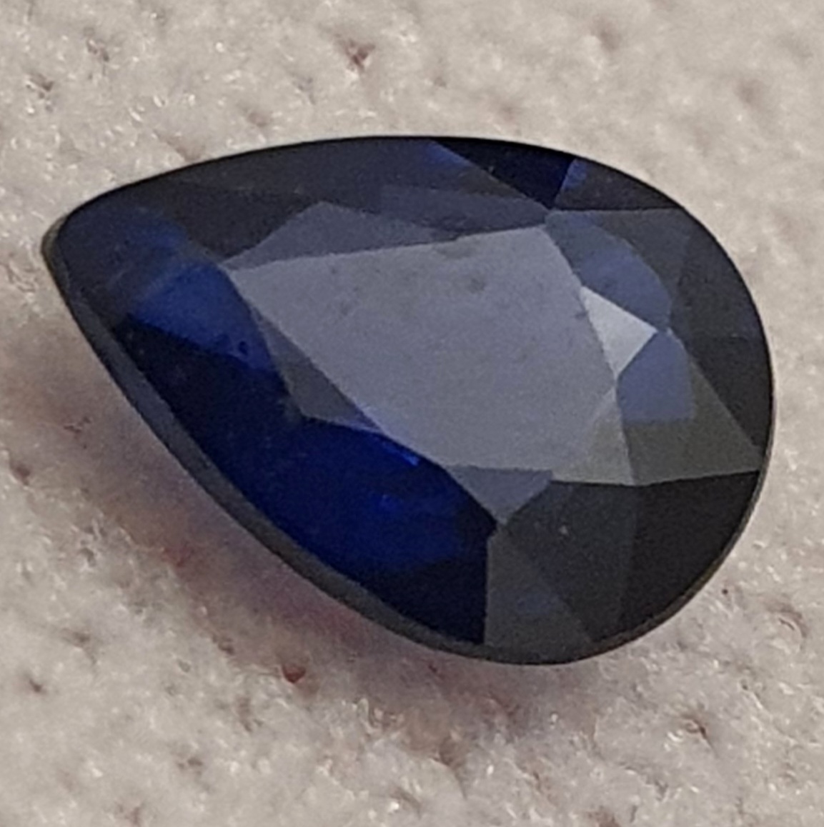 safir natural albastru, tratat termic, in greutate de 0.74ct, de claritate SI curat, fatetat picatura cu dimensiunile: 7 x 5 x 2.6mm