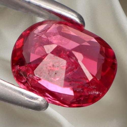 spinel natural roz-intens de top, claritate SI, in greutate de 0.54ct, fatetat oval, cu dimensiunile: 5.6 x 4.6 x 2.5mm