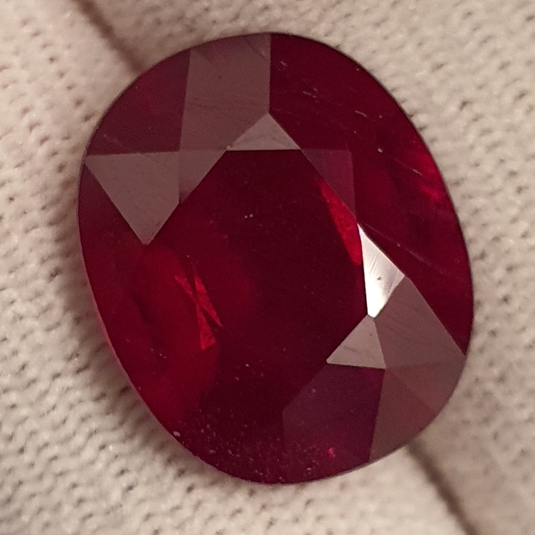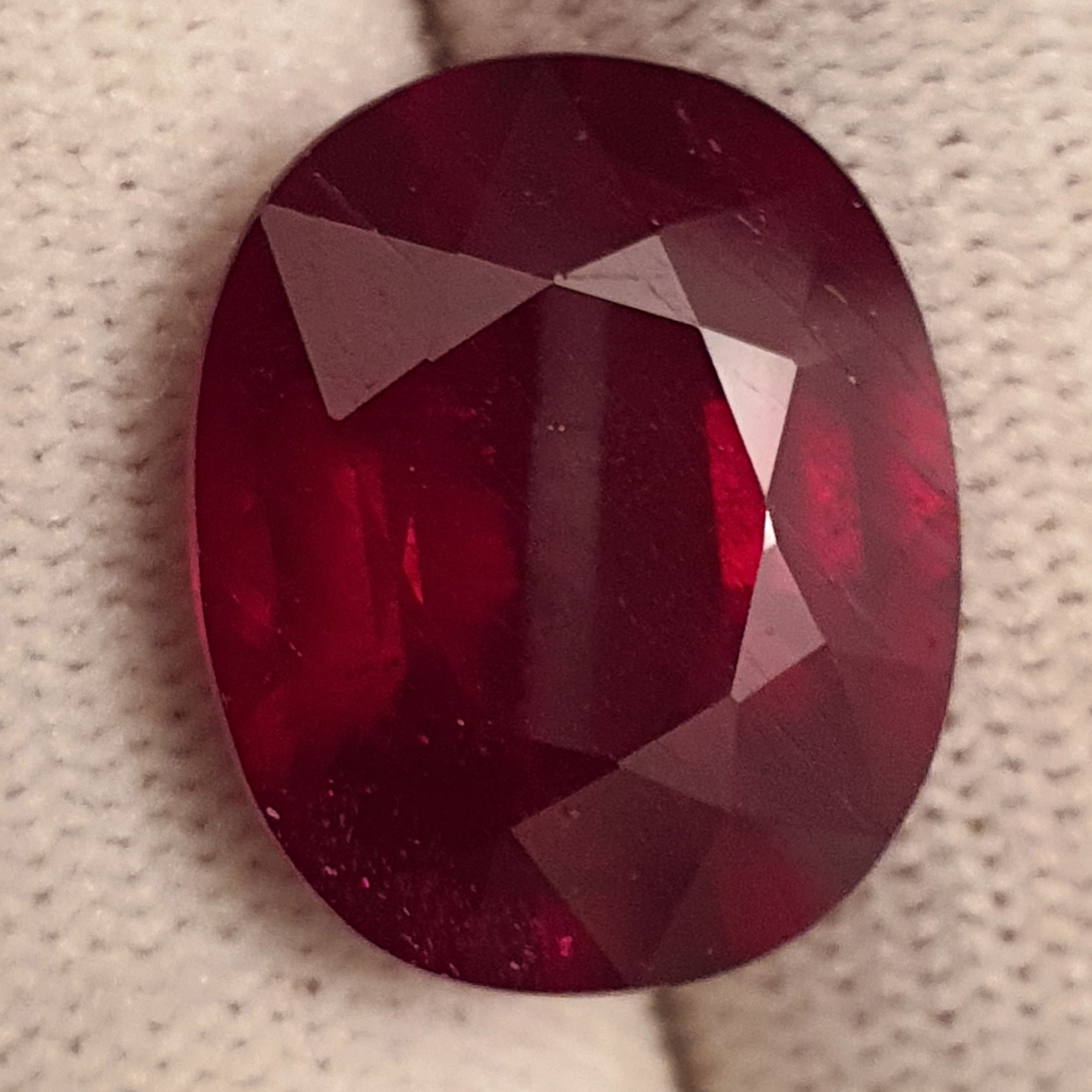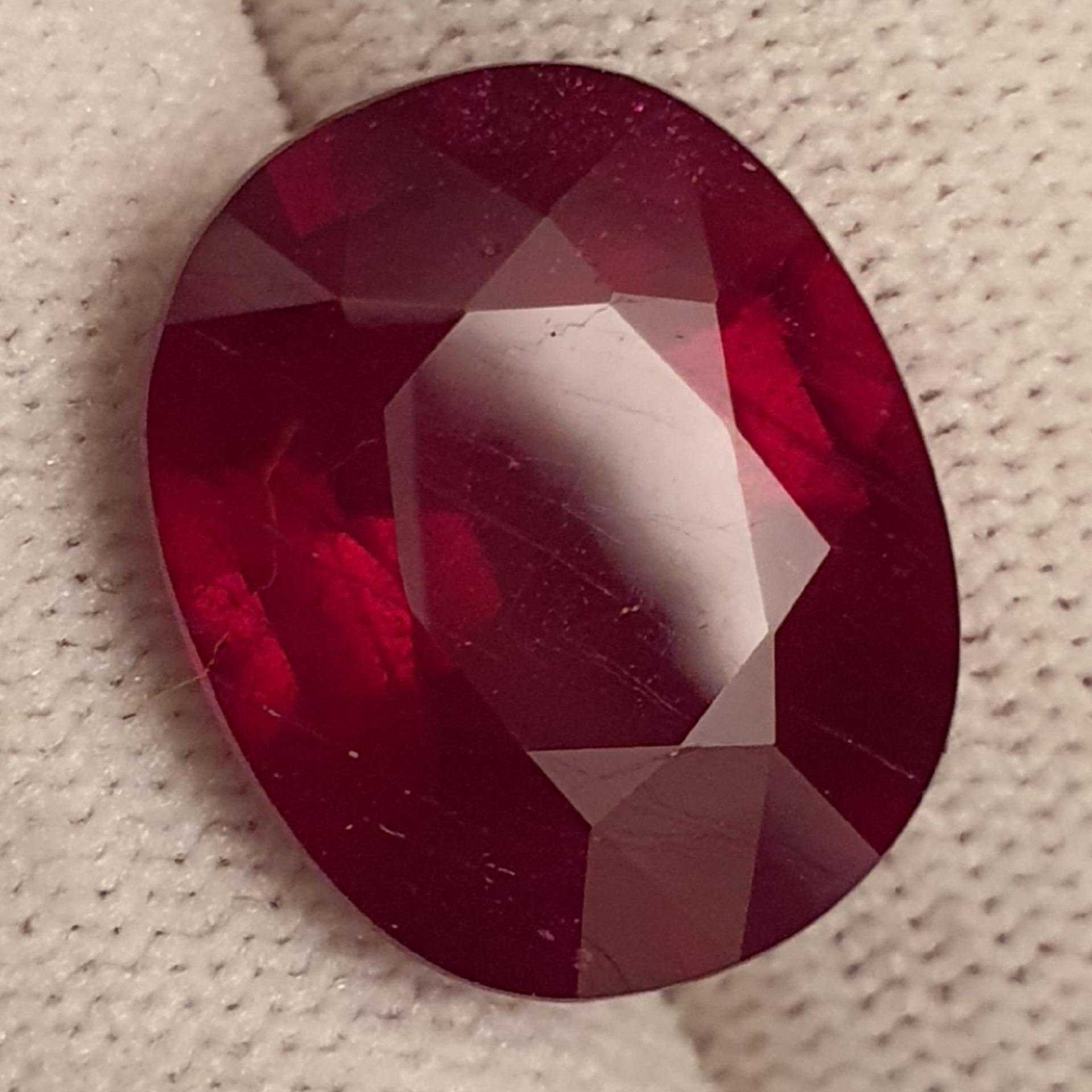 splendid rubin natural cu tratament standard, rosu de top, in greutate de 16.14 carate, fatetat oval, de mari dimensiuni: 16.98 x 13.94 x 7.84mm