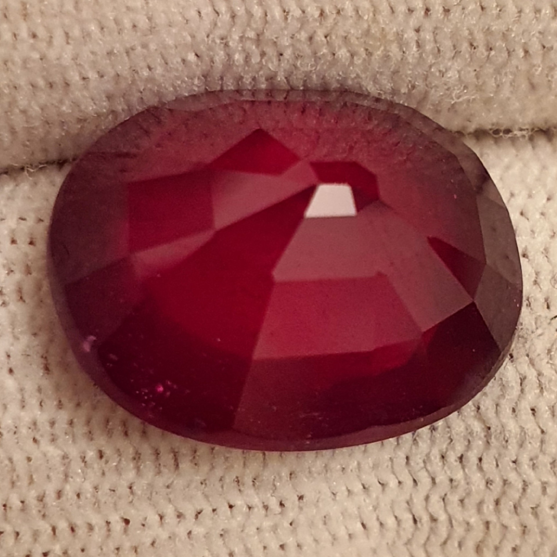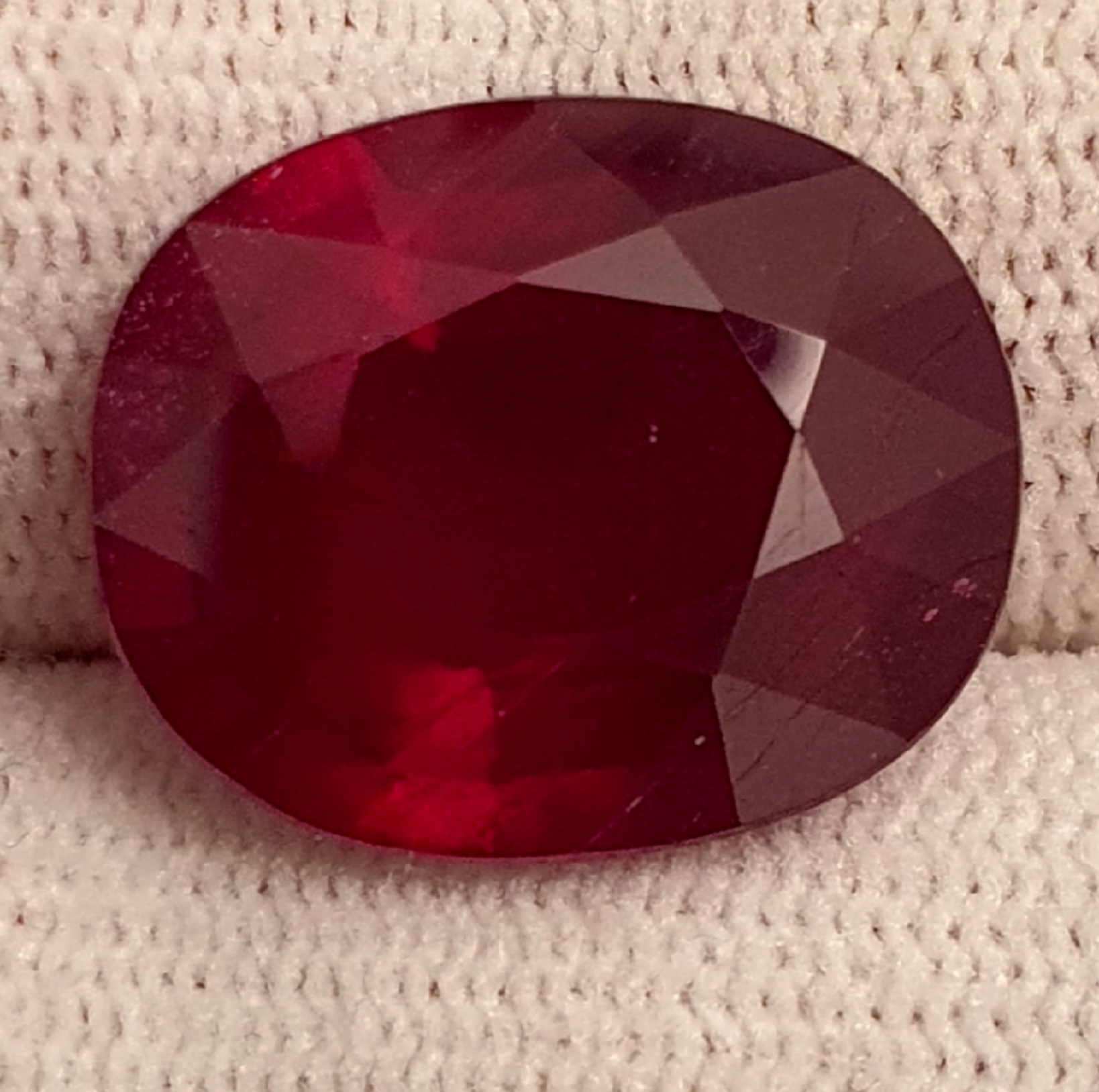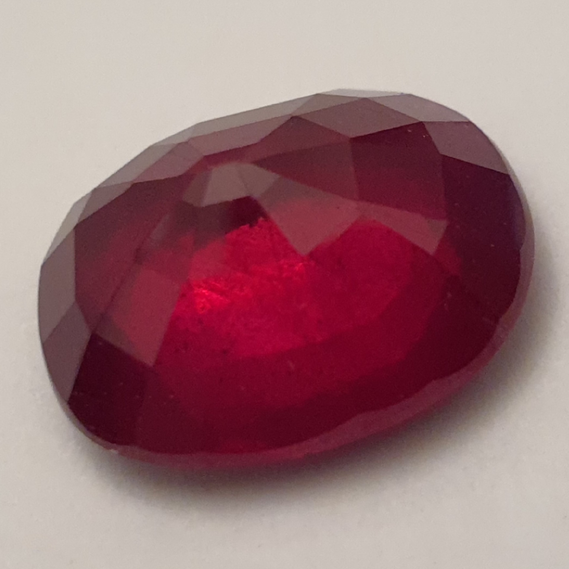 splendid rubin natural cu tratament standard, rosu de top, in greutate de 16.14 carate, fatetat oval, de mari dimensiuni: 16.98 x 13.94 x 7.84mm
