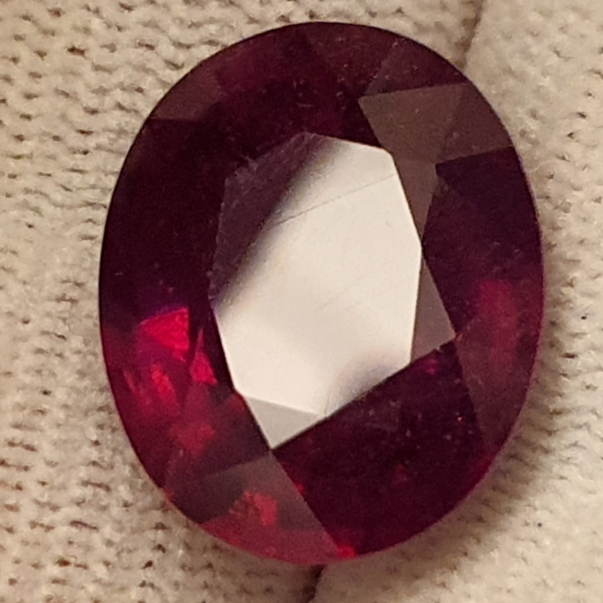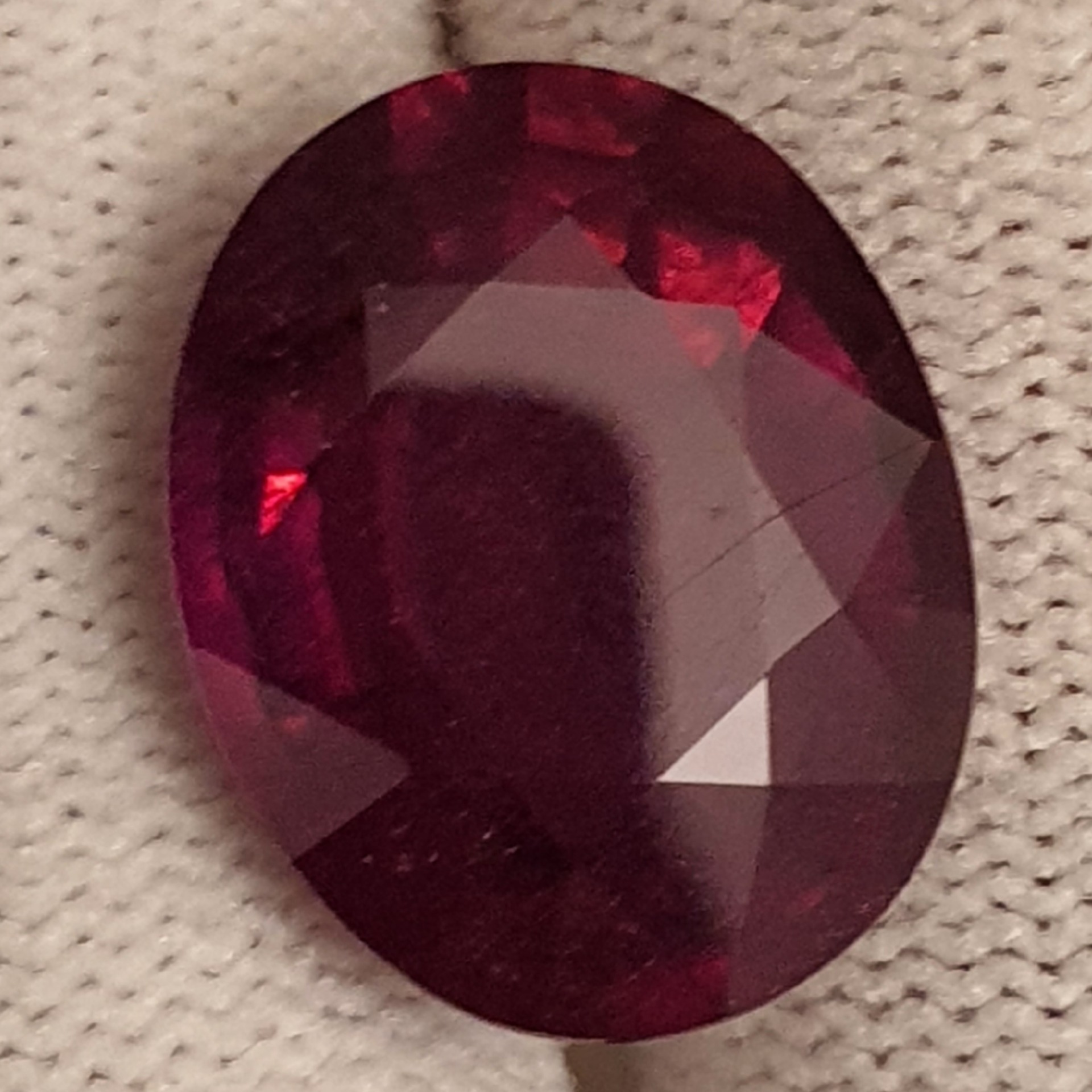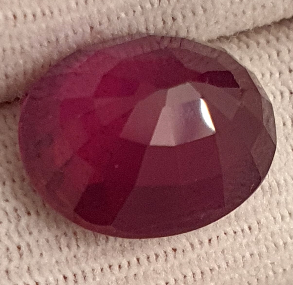 superb rubin natural cu tratament standard, rosu-purpuriu, transparent, in greutate de 16.15 carate, fatetat oval, de mari dimensiuni: 16.90 x 13.47 x 7.94mm