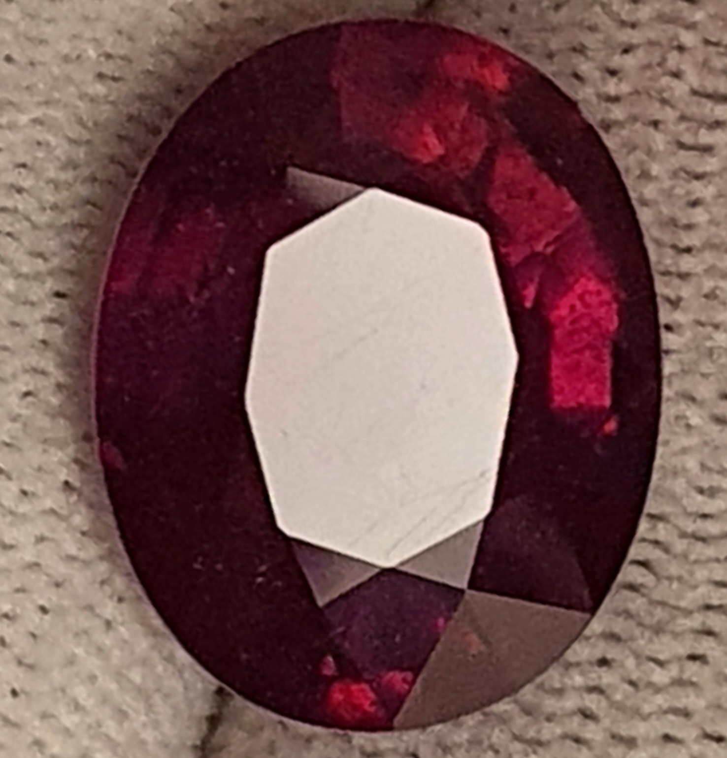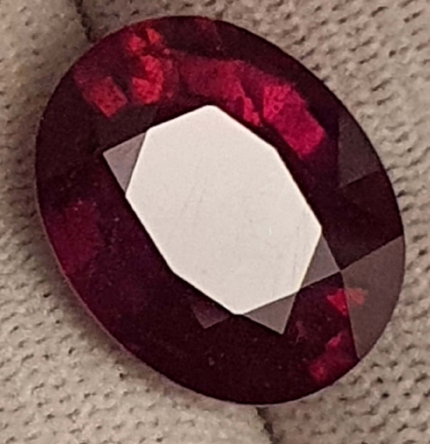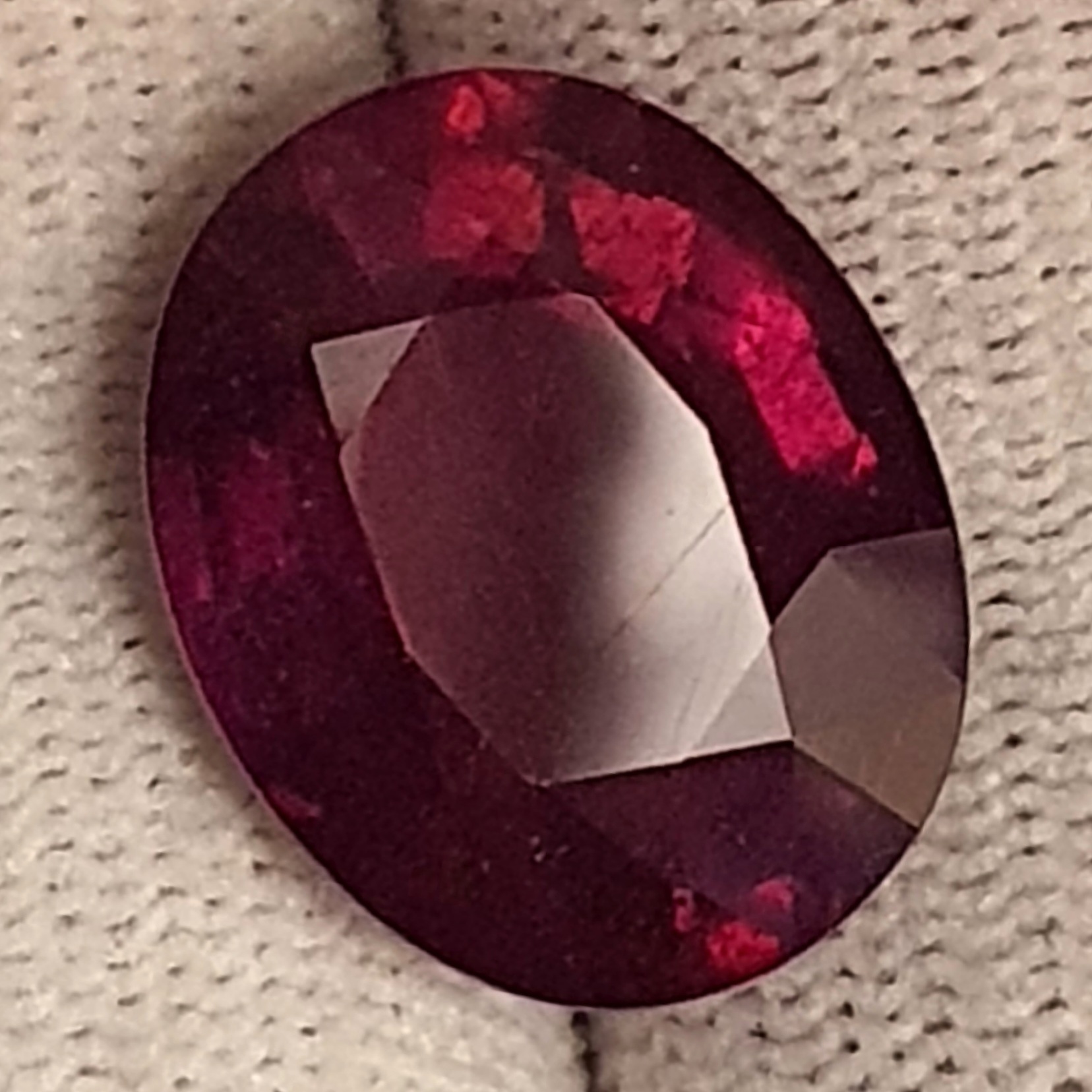superb rubin natural cu tratament standard, rosu-purpuriu, transparent, in greutate de 16.15 carate, fatetat oval, de mari dimensiuni: 16.90 x 13.47 x 7.94mm
